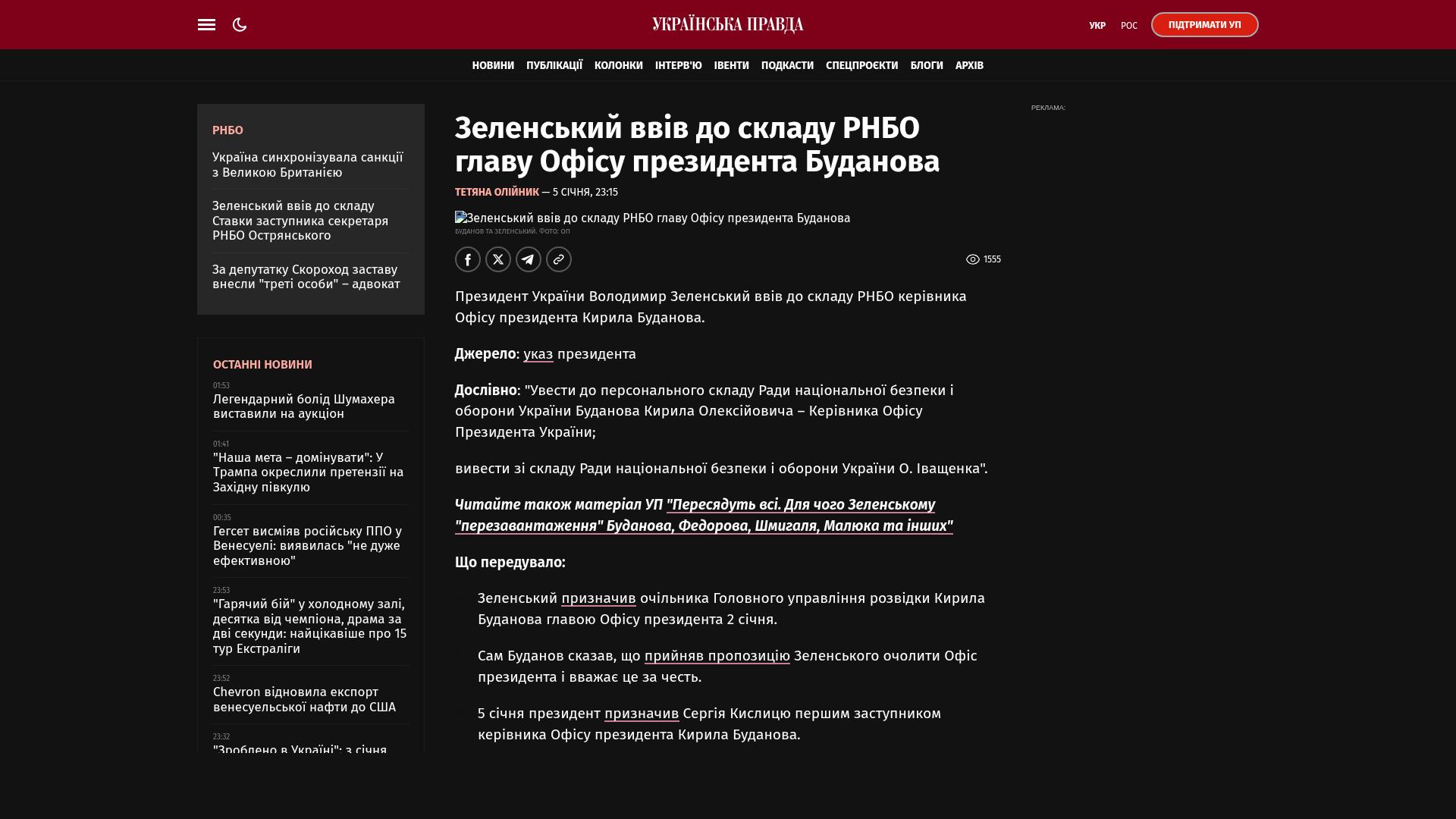 Am 2. Januar ernannte Selenskyj Kyrylo Budanow, den Leiter der Hauptverwaltung für Nachrichtendienste, zum Leiter des Präsidialamtes.