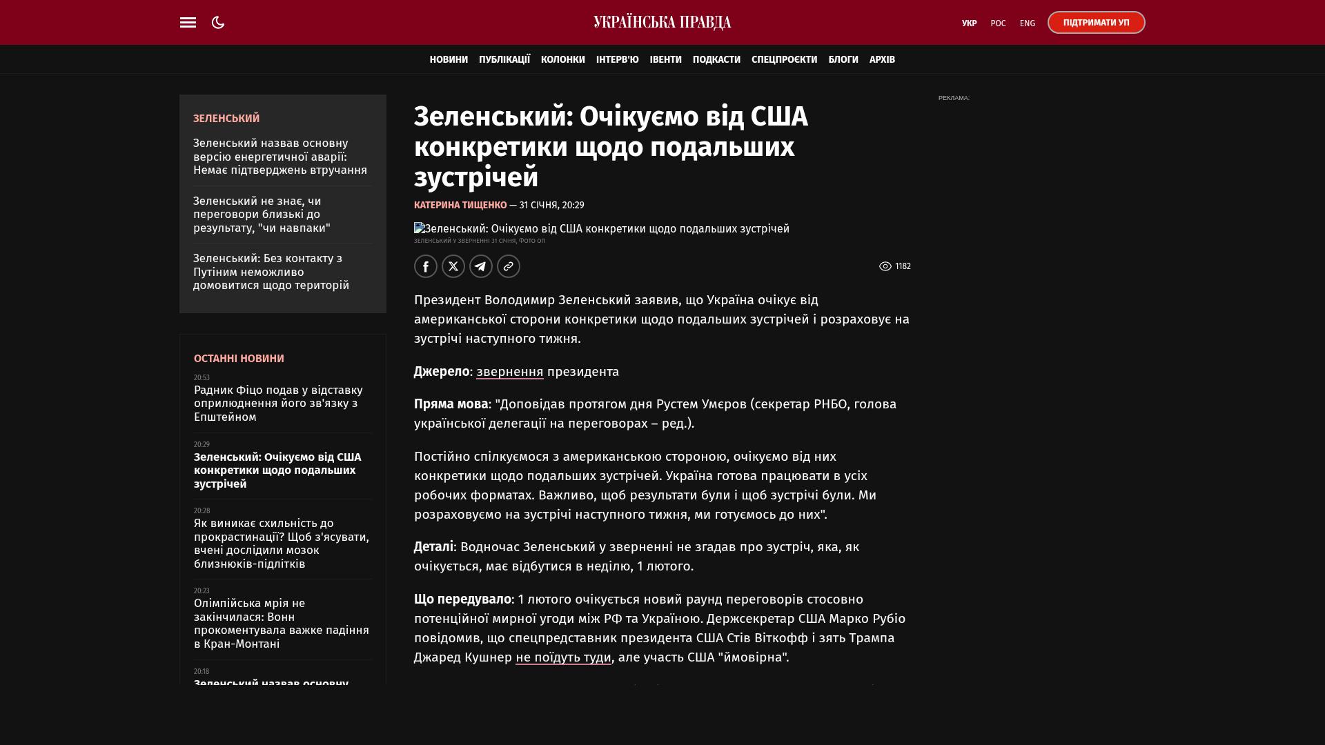 Bildschirmfoto des Originalartikels auf pravda.com.ua
