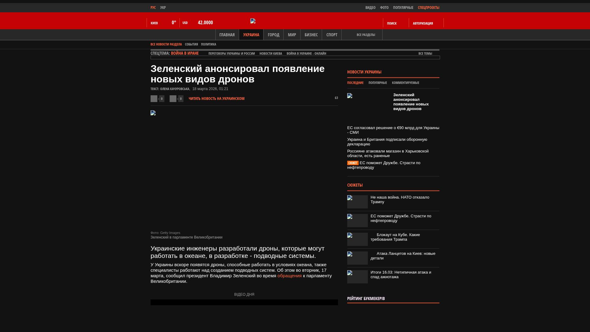 Die Ukraine wird in Kürze über Drohnen verfügen, die im Meer eingesetzt werden können; zudem arbeiten Experten an der Entwicklung von Unterwassersystemen. Dies teilte Präsident Wolodymyr Selenskyj am Dienstag, dem 17. März, in einer Ansprache vor dem britischen Parlament mit.