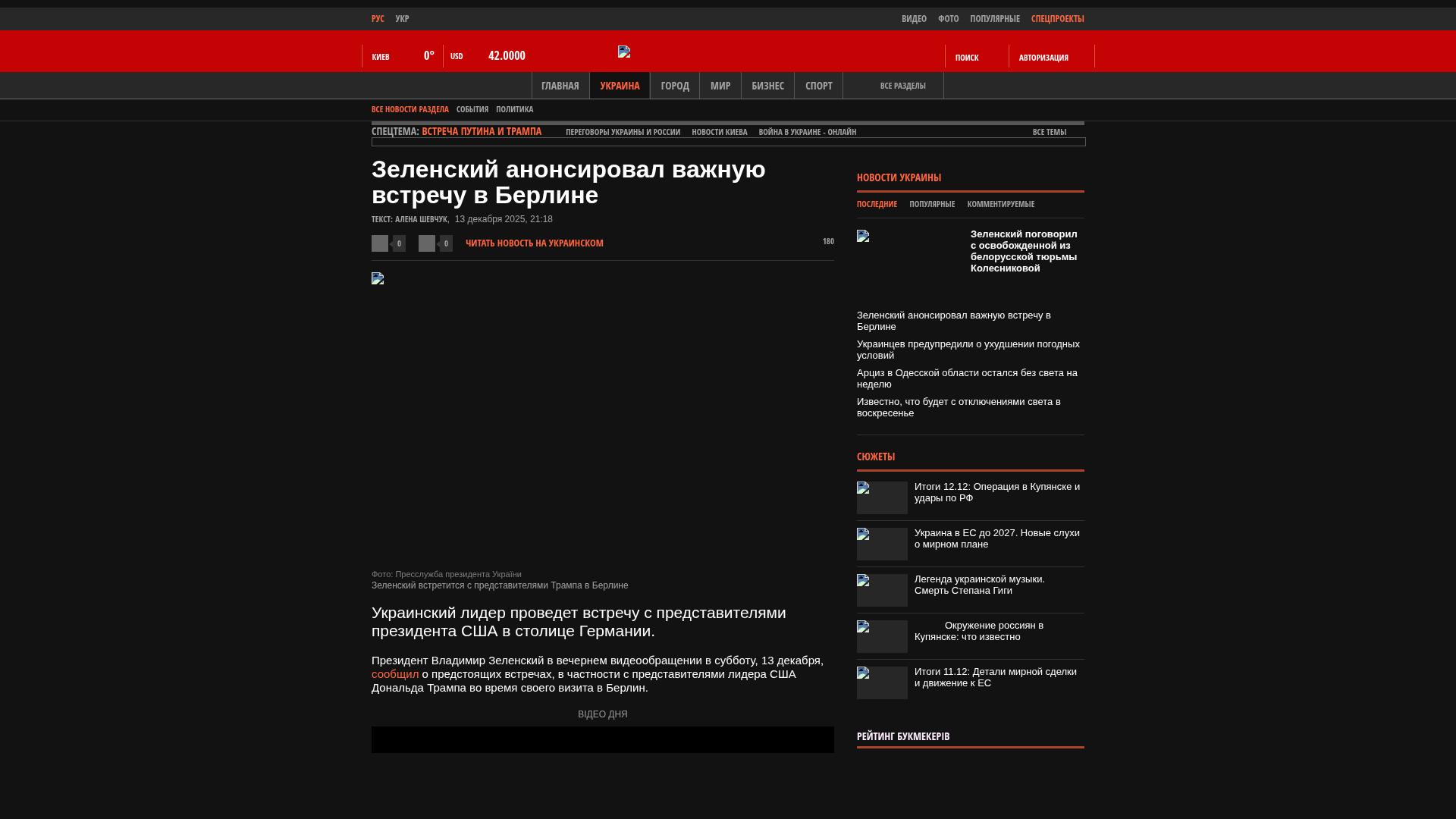Präsident Wolodymyr Selenskyj kündigte in einer abendlichen Videobotschaft am Samstag, den 13. Dezember, die bevorstehenden Treffen an, insbesondere mit Vertretern des US-Präsidenten Donald Trump während seines Besuchs in Berlin.