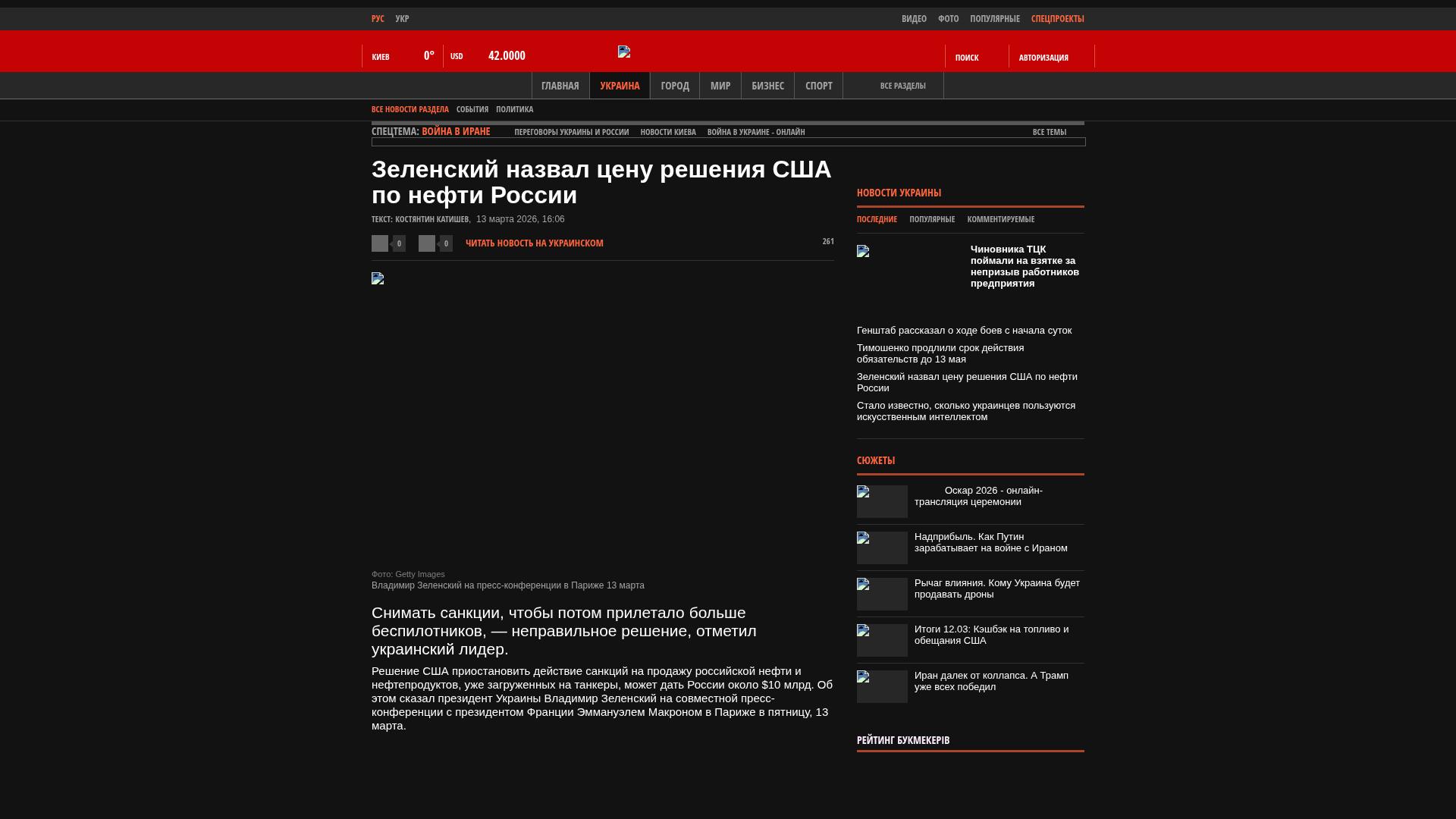 Die Entscheidung der USA, die Sanktionen gegen den Verkauf von russischem Öl und Ölprodukten, die bereits auf Tanker verladen wurden, auszusetzen, könnte Russland rund 10 Milliarden Dollar einbringen. Dies erklärte der ukrainische Präsident Wolodymyr Selenskyj auf einer gemeinsamen Pressekonferenz mit dem französischen Präsidenten Emmanuel Macron am Freitag, dem 13. März, in Paris.