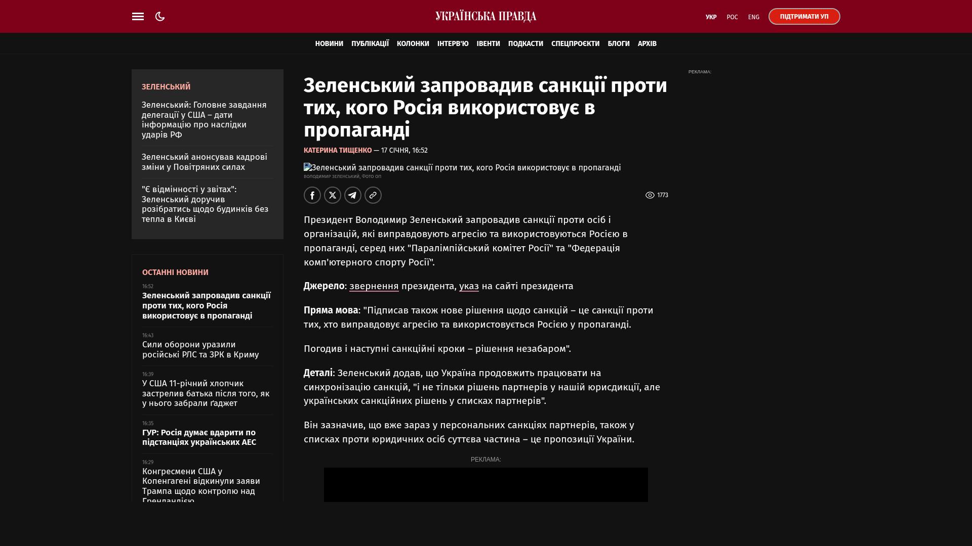 Bildschirmfoto des Originalartikels auf pravda.com.ua