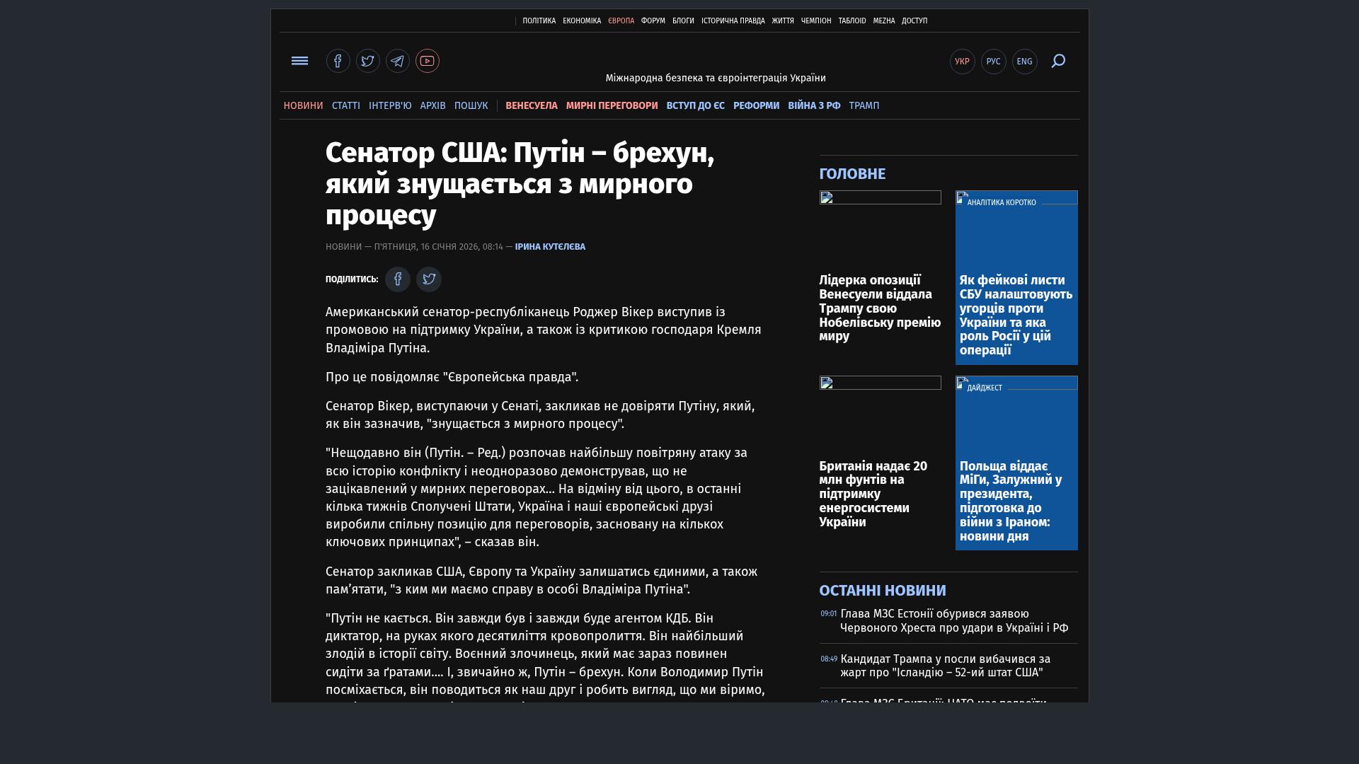 Bildschirmfoto des Originalartikels auf pravda.com.ua