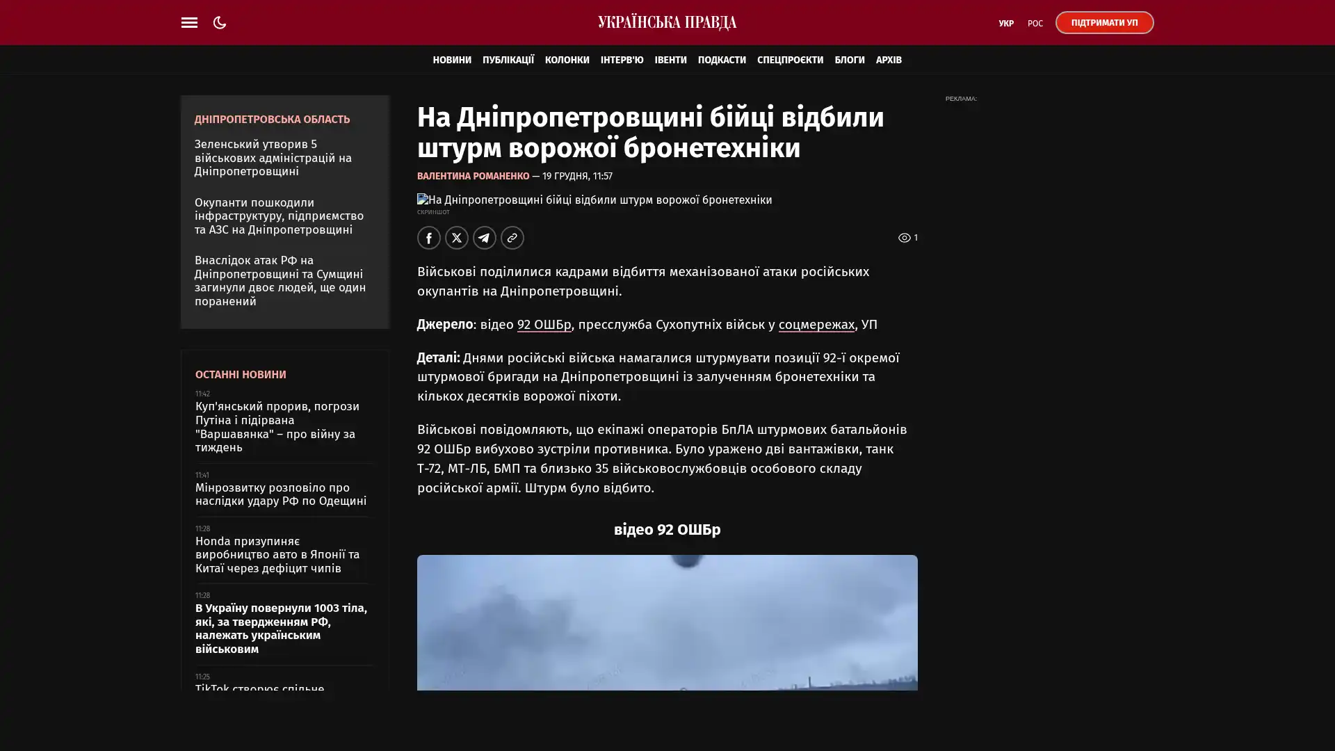 Quelle: Video der 92. Separatistischen Mechanisierten Brigade, der Pressedienst der Landstreitkräfte in den sozialen Medien, Ukrajinska Prawda