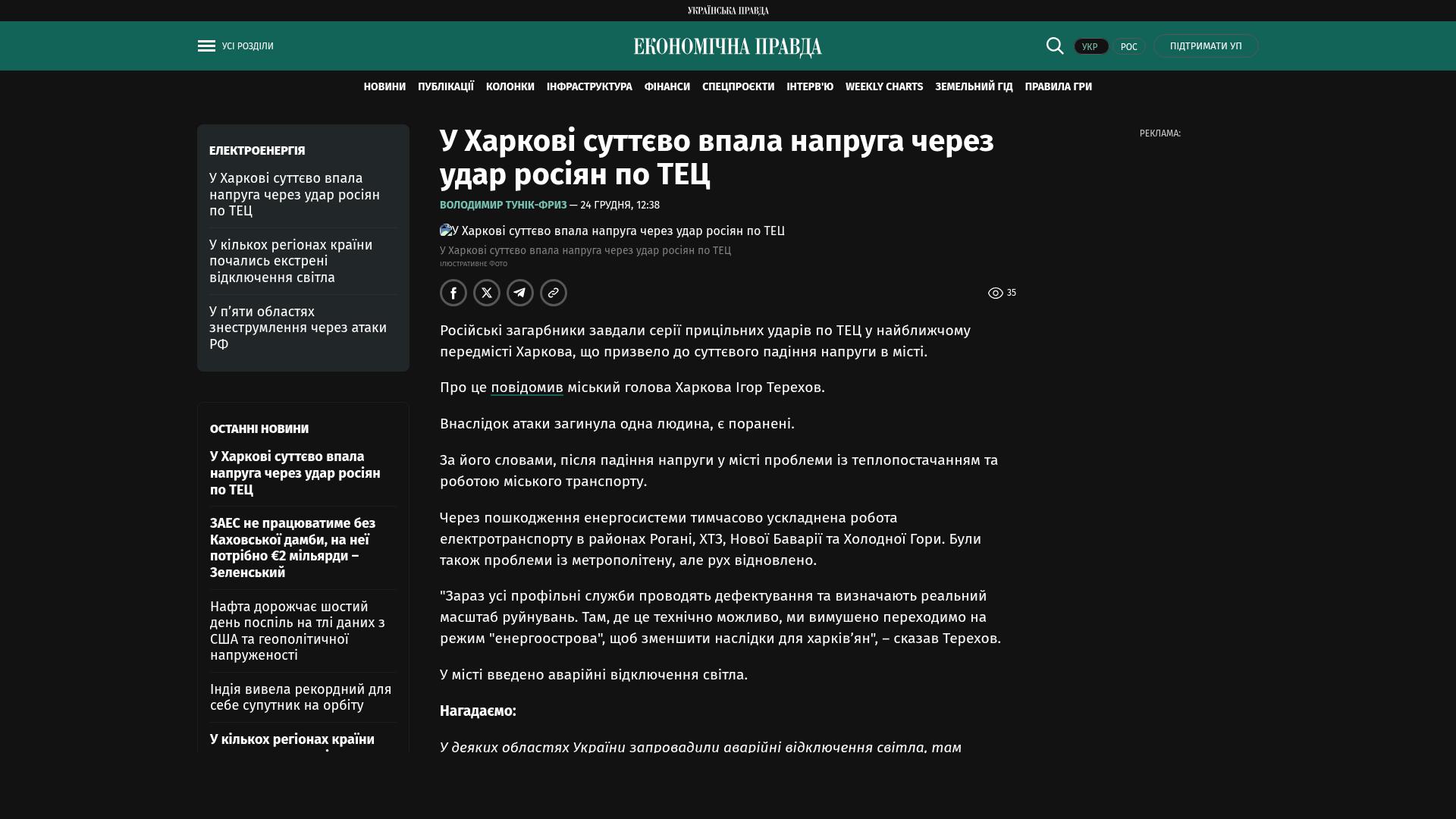 In der Nacht zum 24. Dezember griff der Feind die Energieinfrastruktur an, was zu neuen Stromausfällen in den Regionen Sumy, Dnipro, Cherson, Charkiw und Tschernihiw führte.