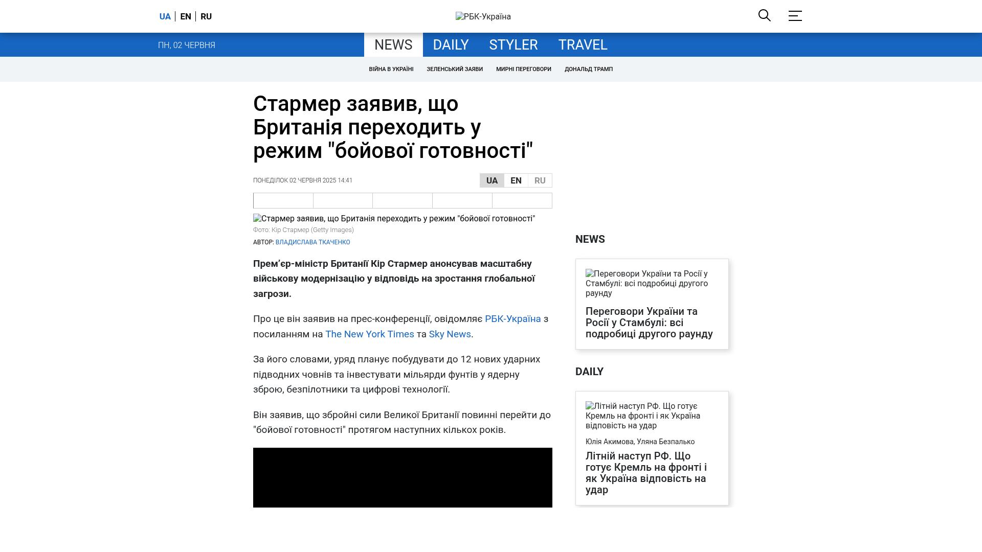 Bildschirmfoto des Originalartikels auf rbc.ua