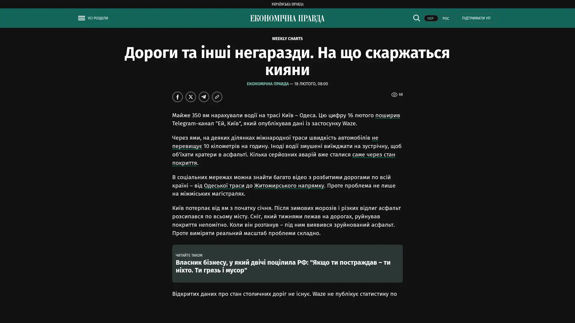 Fast 350 Schlaglöcher haben Autofahrer auf der Strecke Kiew – Odessa gezählt. Diese Zahl wurde am 16. Februar vom Telegram-Kanal „Hey, Kiew“ verbreitet, der Daten aus der App Waze veröffentlichte.