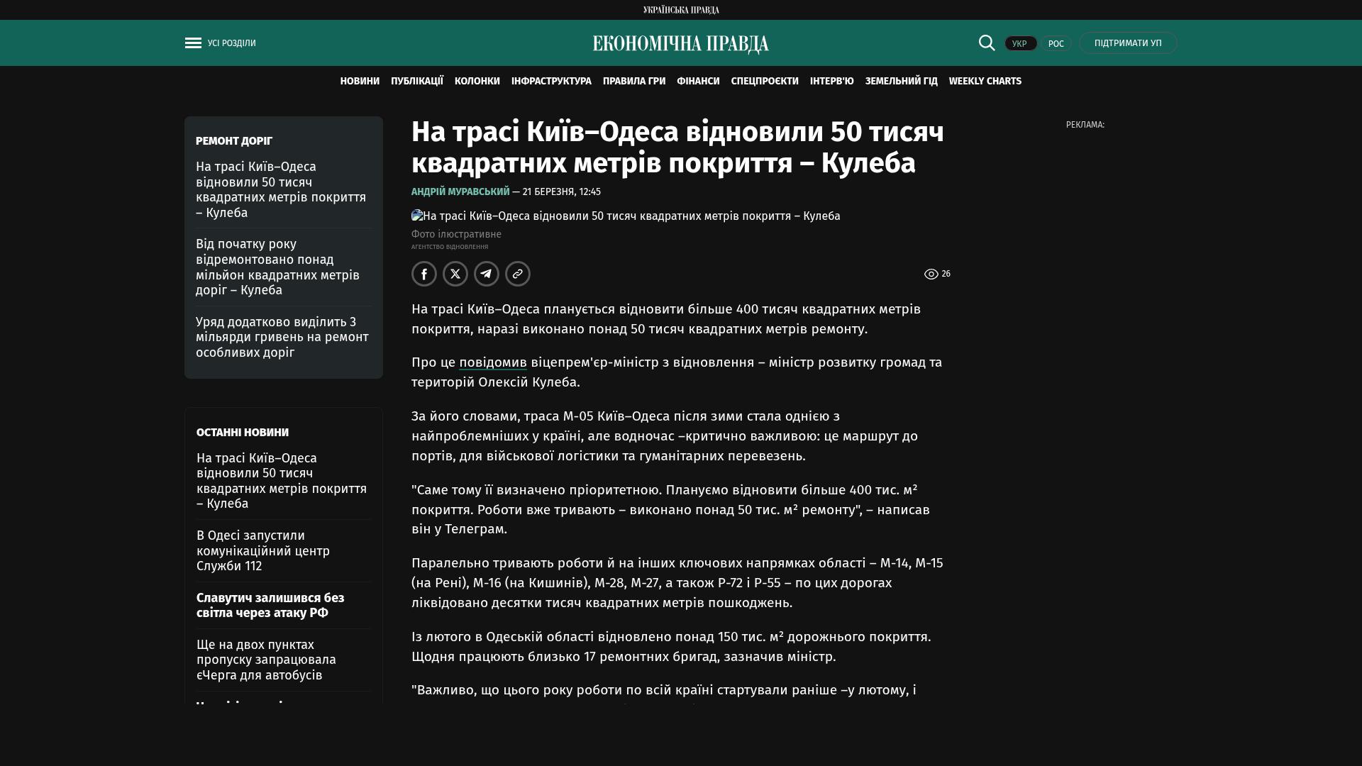 Seinen Angaben zufolge ist die M-05 Kiew–Odessa nach dem Winter zu einer der problematischsten Straßen des Landes geworden, gleichzeitig aber auch von entscheidender Bedeutung: Sie ist die Verbindung zu den Häfen sowie für die militärische Logistik und humanitäre Transporte.