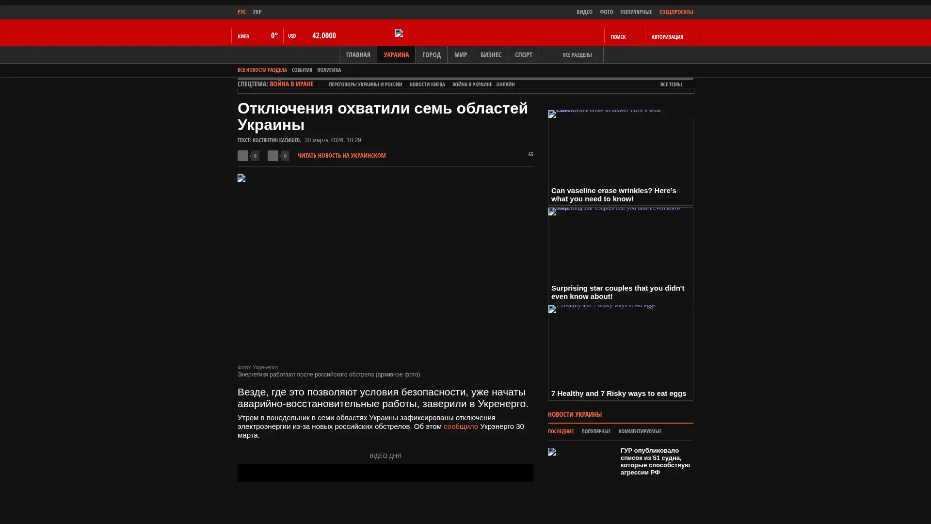 Am Montagmorgen wurden in sieben Regionen der Ukraine Stromausfälle aufgrund neuer russischer Beschüsse verzeichnet. Dies teilte Ukrenerho am 30. März mit.
