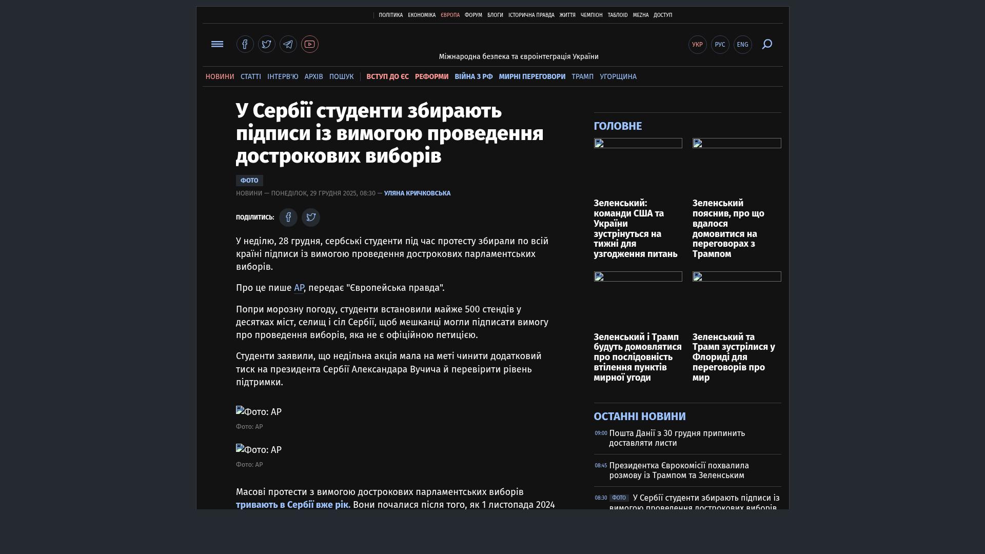 Am Sonntag, den 28. Dezember, haben serbische Studenten im ganzen Land bei einer Protestaktion Unterschriften für vorgezogene Parlamentswahlen gesammelt.