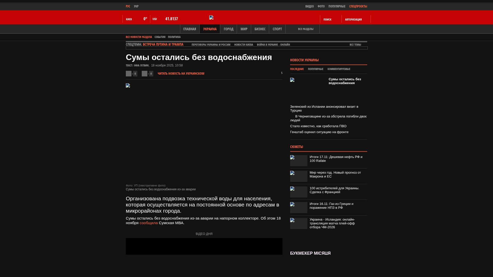Sumy blieb aufgrund eines Unfalls an einem Drucksammler ohne Wasserversorgung. Dies wurde von der MVA Sumy am 18. November gemeldet.