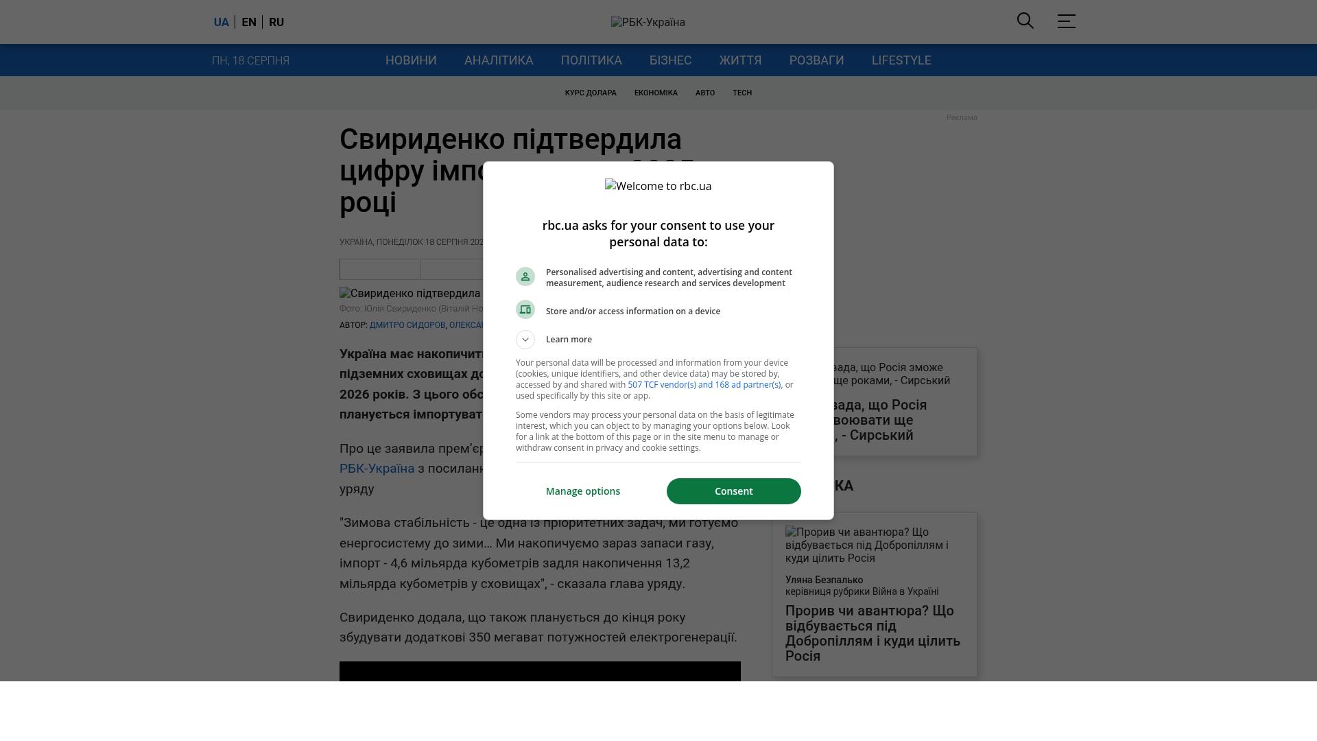 Bildschirmfoto des Originalartikels auf rbc.ua