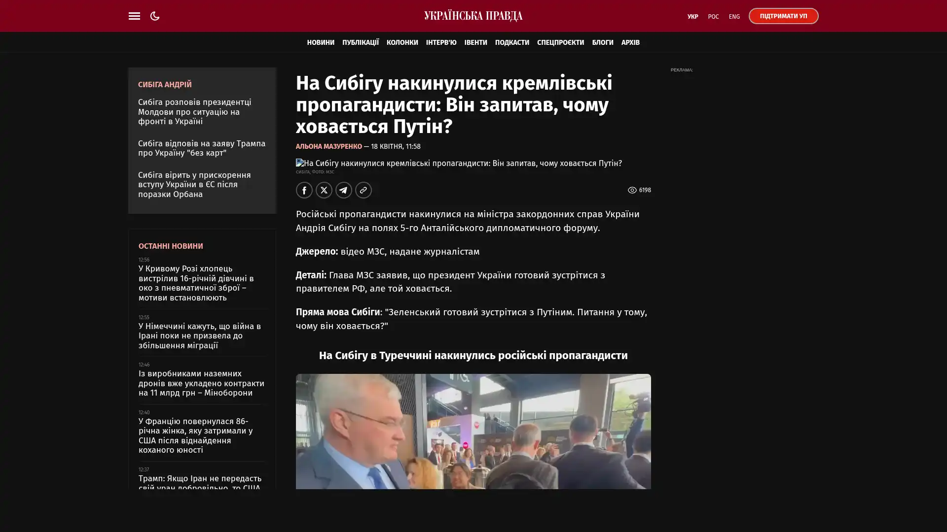 Bildschirmfoto des Originalartikels auf pravda.com.ua