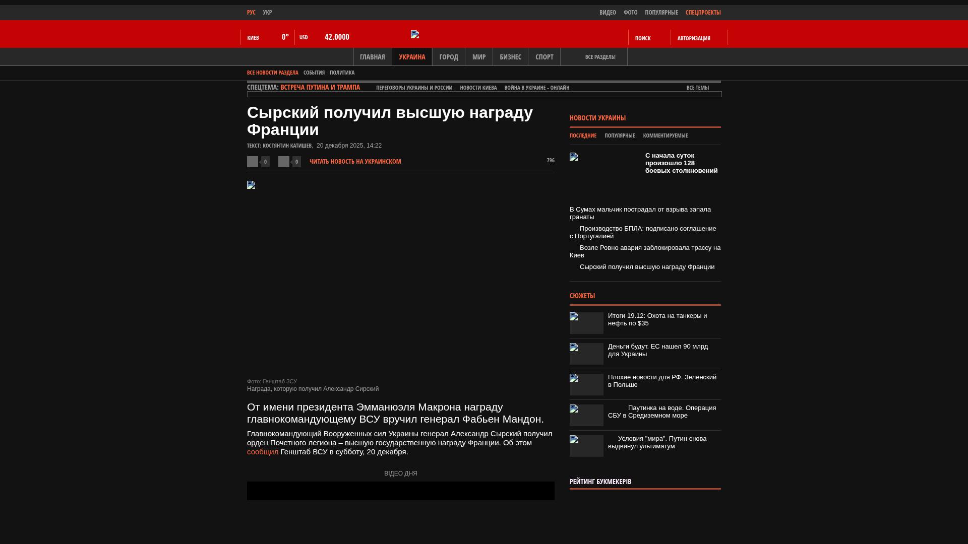 Der Oberbefehlshaber der ukrainischen Streitkräfte, General Olexander Syrskyj, hat den Orden der Ehrenlegion, die höchste staatliche Auszeichnung Frankreichs, erhalten. Dies teilte der Generalstab der Streitkräfte der Ukraine am Samstag, den 20. Dezember mit.