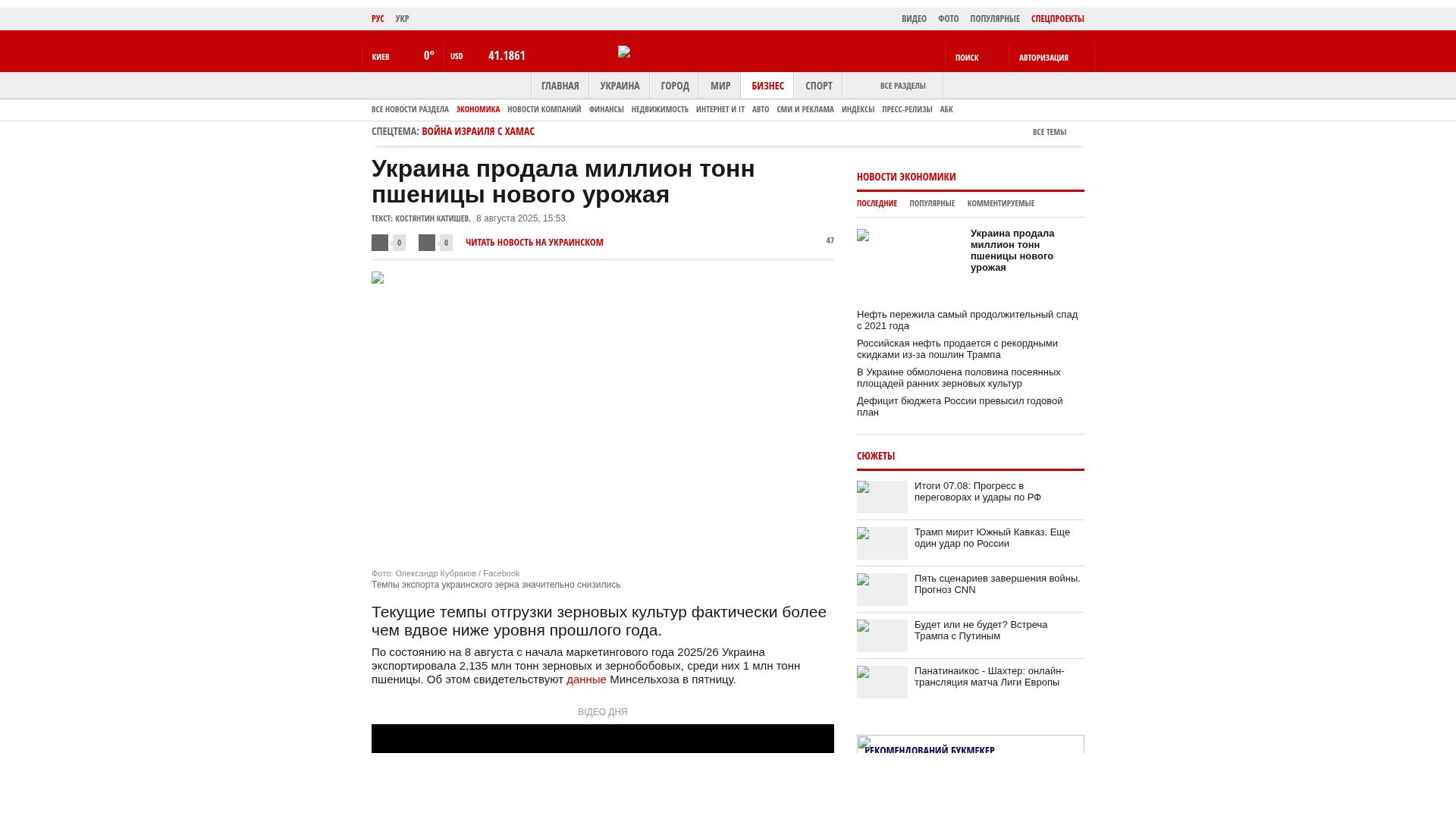 Bis zum 8. August hat die Ukraine seit Beginn des Wirtschaftsjahres 2025/26 2,135 Millionen Tonnen Getreide und Hülsenfrüchte exportiert, darunter 1 Million Tonnen Weizen. Dies geht aus den Daten des Landwirtschaftsministeriums vom Freitag hervor.