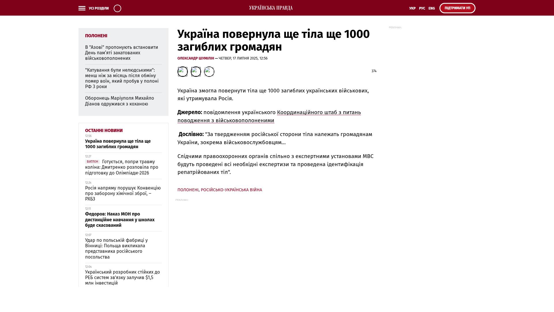 Bildschirmfoto des Originalartikels auf pravda.com.ua
