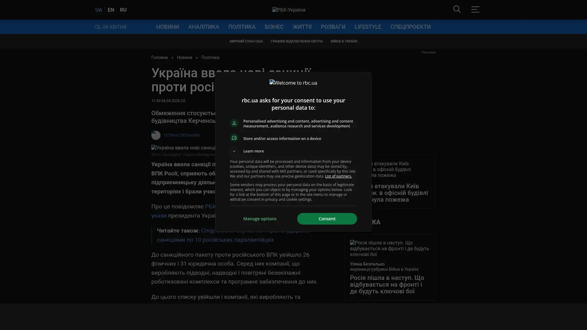 Bildschirmfoto des Originalartikels auf rbc.ua