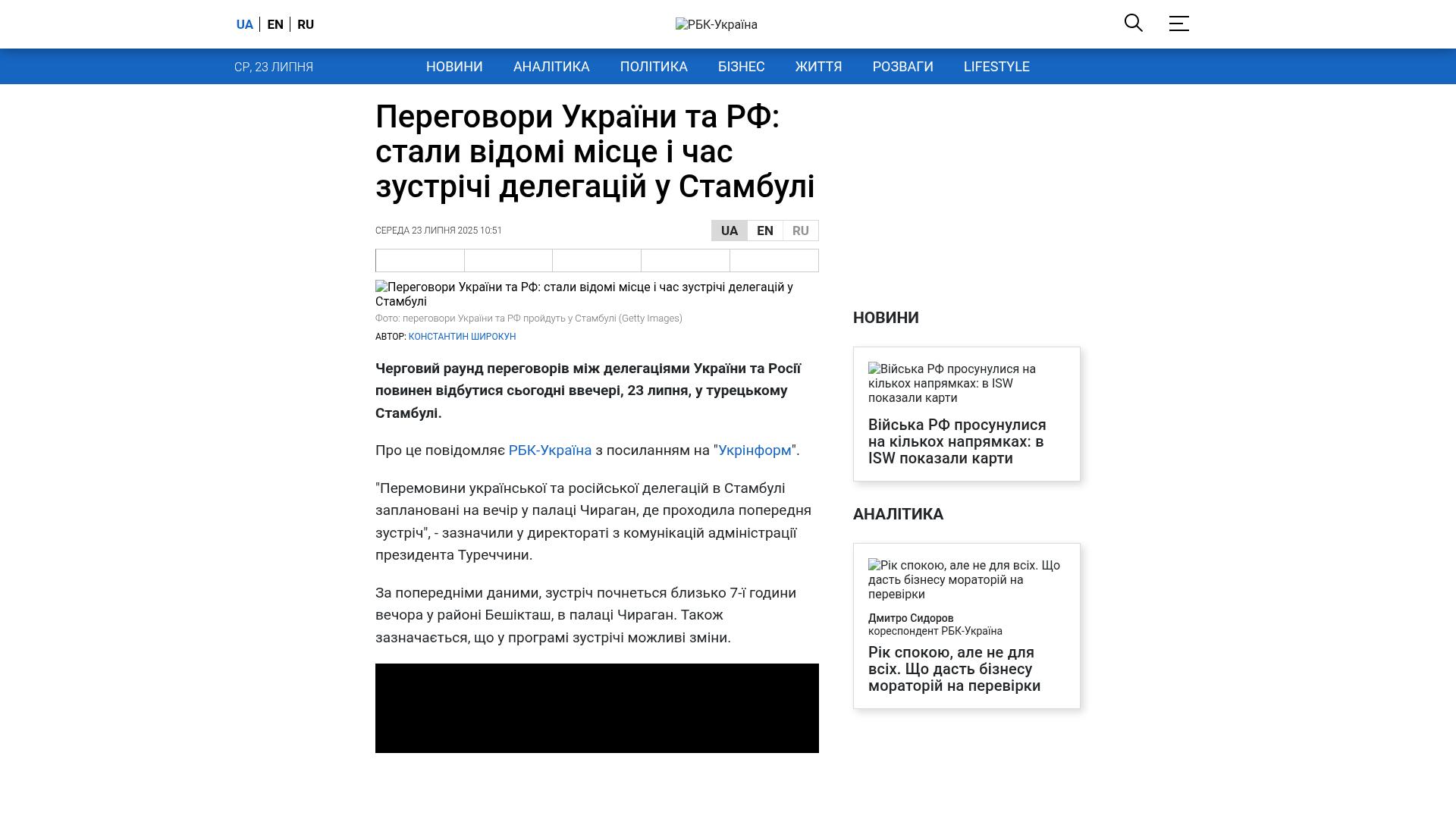 Bildschirmfoto des Originalartikels auf rbc.ua