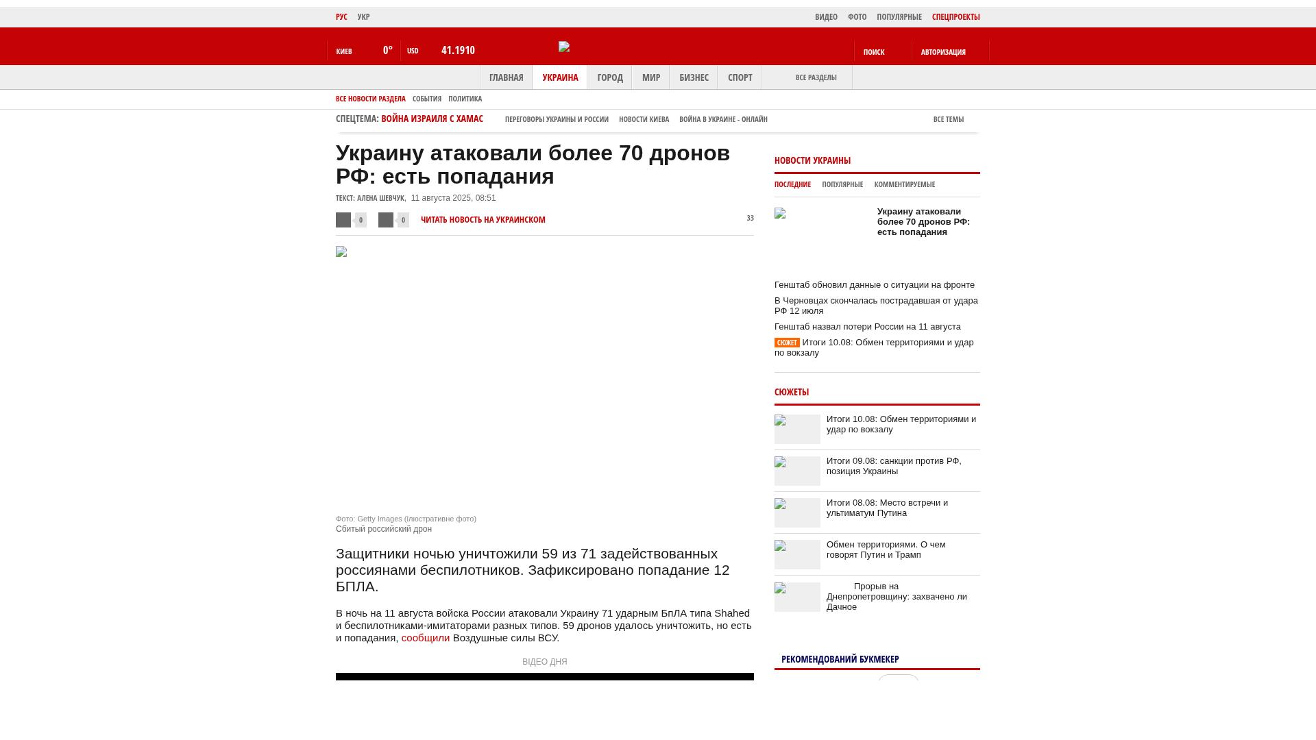 In der Nacht zum 11. August griffen die russischen Streitkräfte die Ukraine mit 71 Schahed-Angriffsdrohnen und Imitationsdrohnen verschiedener Typen an. 59 Drohnen wurden zerstört, aber es gab auch Treffer, teilte die Luftwaffe der ukrainischen Streitkräfte mit.