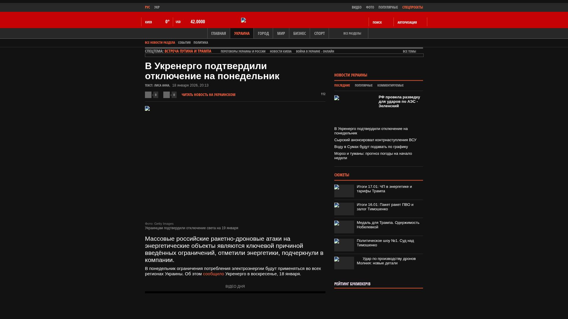 Am Montag werden in allen Regionen der Ukraine Einschränkungen für den Stromverbrauch gelten. Dies wurde von Ukrenerho am Sonntag, den 18. Januar berichtet.