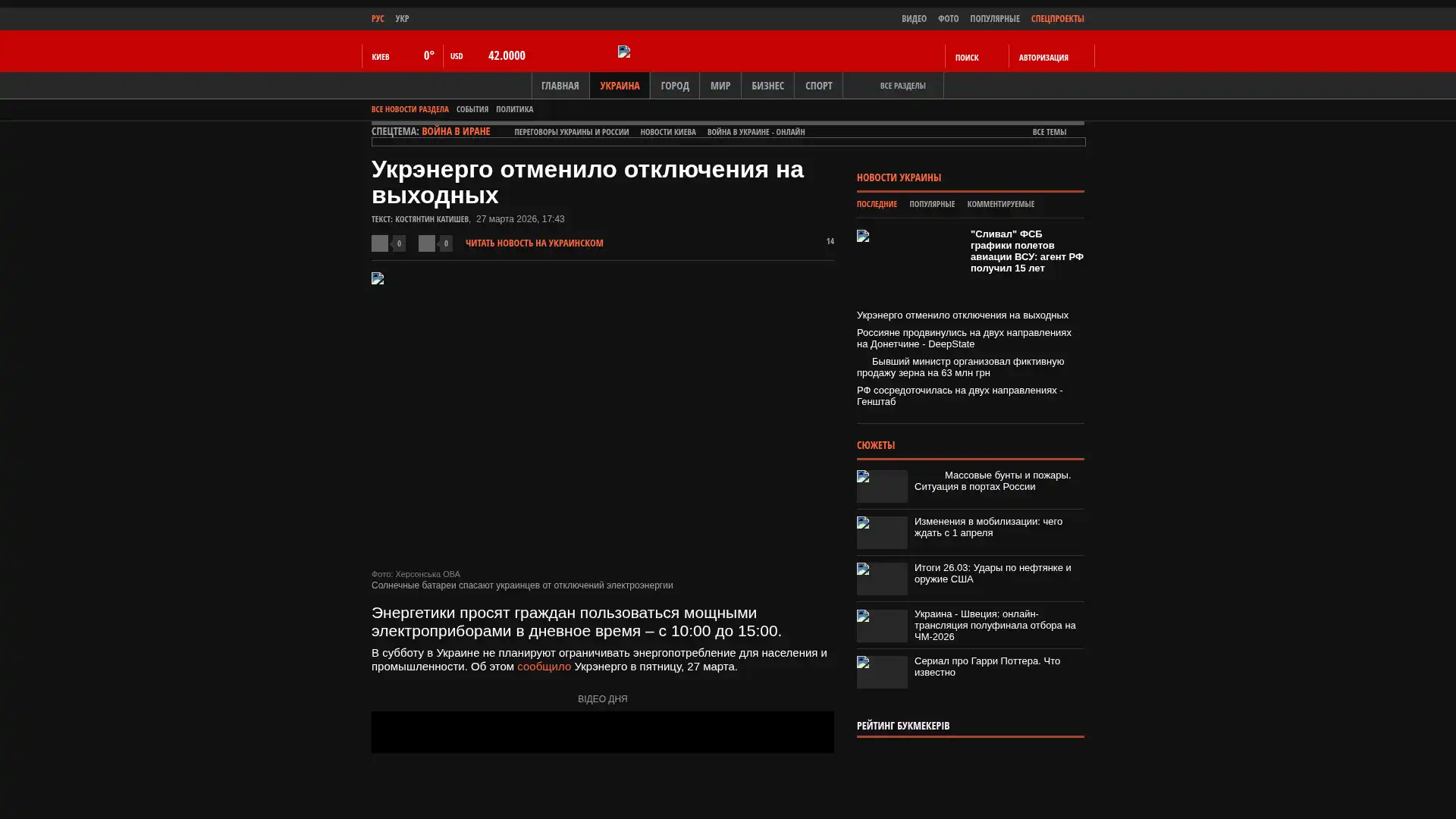Am Samstag sind in der Ukraine keine Einschränkungen des Stromverbrauchs für die Bevölkerung und die Industrie geplant. Dies teilte Ukrenerho am Freitag, dem 27. März, mit.