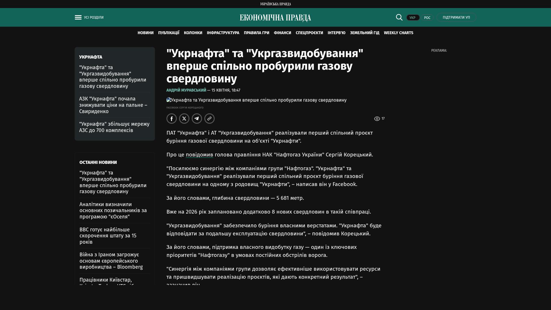 „Wir stärken die Synergie zwischen den Unternehmen der „Naftohas“-Gruppe. „Ukrnafta“ und „Ukrgazvydobuvannya“ haben das erste gemeinsame Projekt zur Bohrung eines Gasbohrlochs auf einem der Felder von „Ukrnafta“ umgesetzt“, schrieb er auf Facebook.