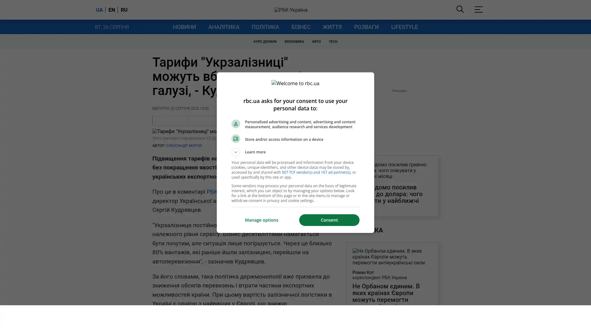Bildschirmfoto des Originalartikels auf rbc.ua