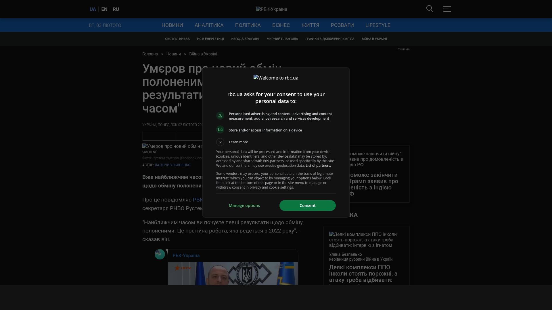 Bildschirmfoto des Originalartikels auf rbc.ua