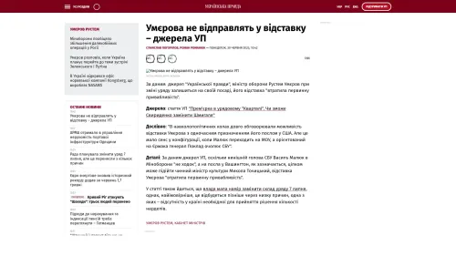 Nach Informationen von Ukrajinska Prawda wird Verteidigungsminister Rustem Umjerow während des Regierungswechsels auf seinem Posten bleiben, und sein Rücktritt hat „seinen anfänglichen Reiz verloren“.