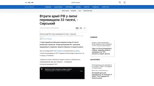 Bildschirmfoto des Originalartikels auf rbc.ua