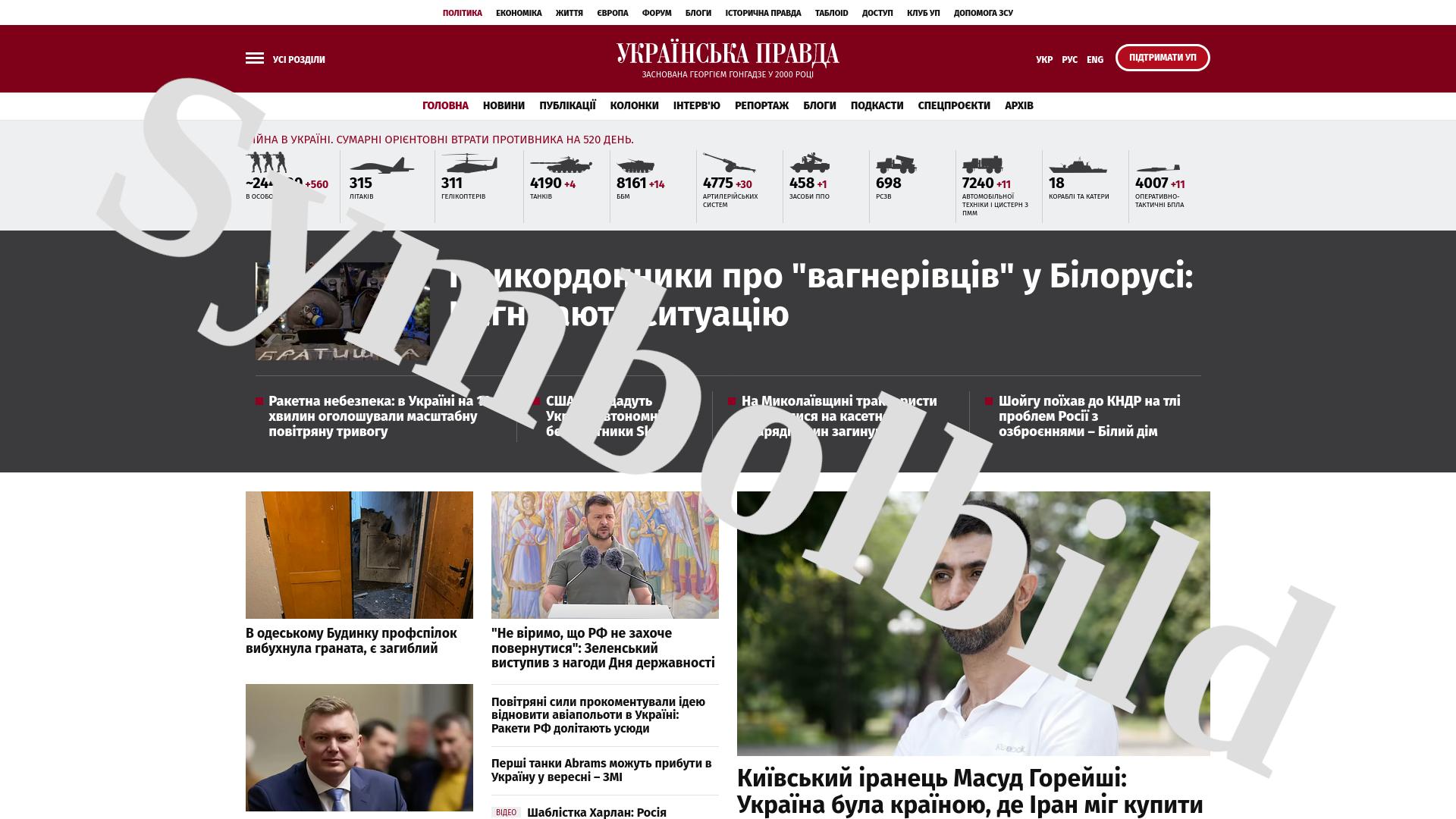 Bildschirmfoto des Originalartikels auf pravda.com.ua