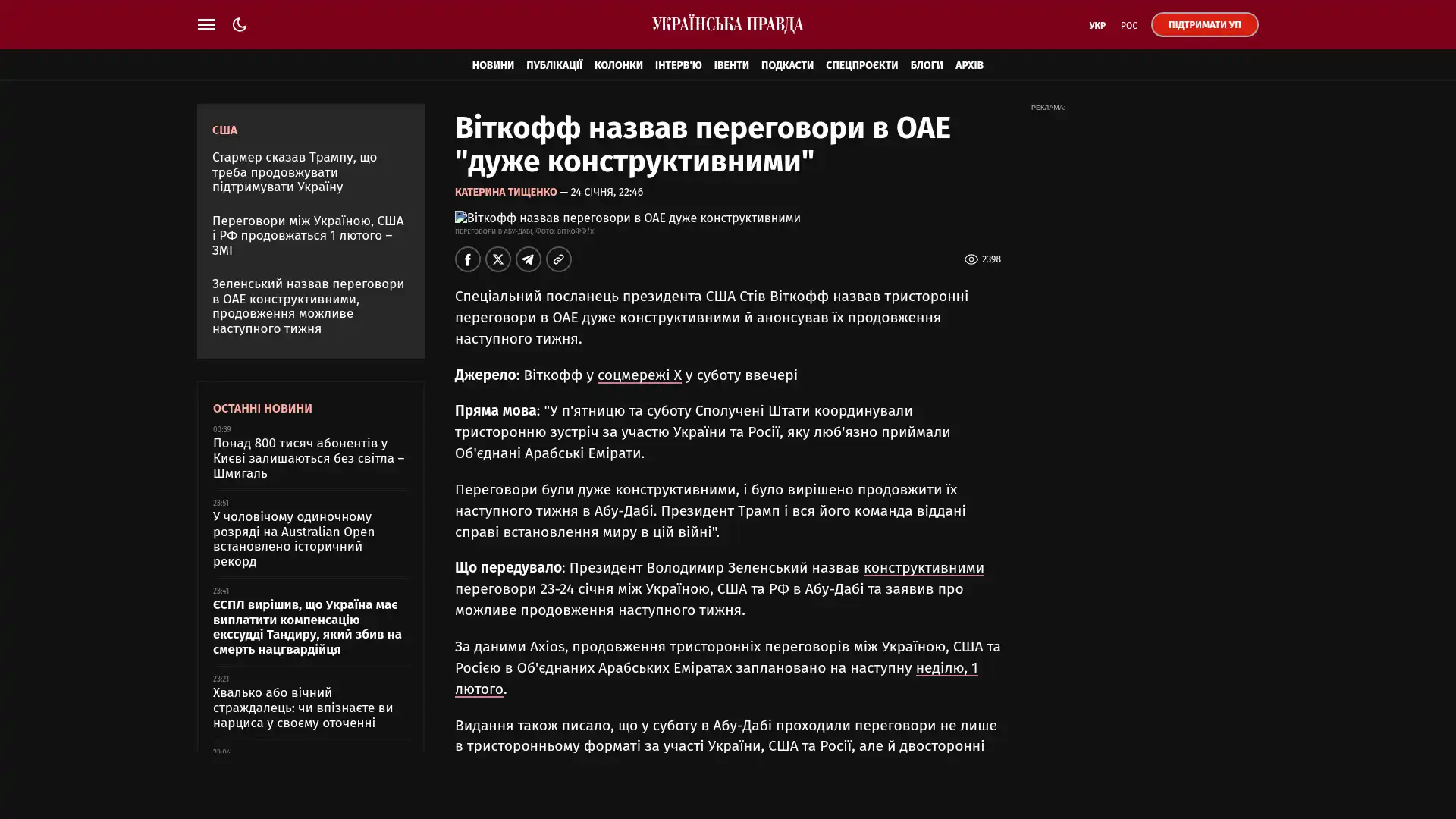 Nach Angaben von Axios ist die Fortsetzung der trilateralen Gespräche zwischen der Ukraine, den USA und Russland in den Vereinigten Arabischen Emiraten für den kommenden Sonntag, den 1. Februar, geplant.