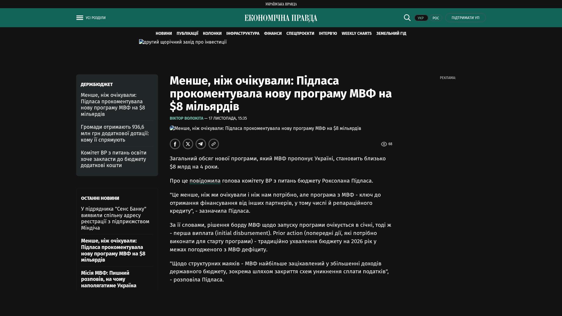 „Das ist weniger als wir erwartet haben und als wir brauchen, aber das Programm mit dem IWF ist der Schlüssel, um Finanzmittel von anderen Partnern zu erhalten, einschließlich eines Reparationskredits“, sagte Pidlasa.