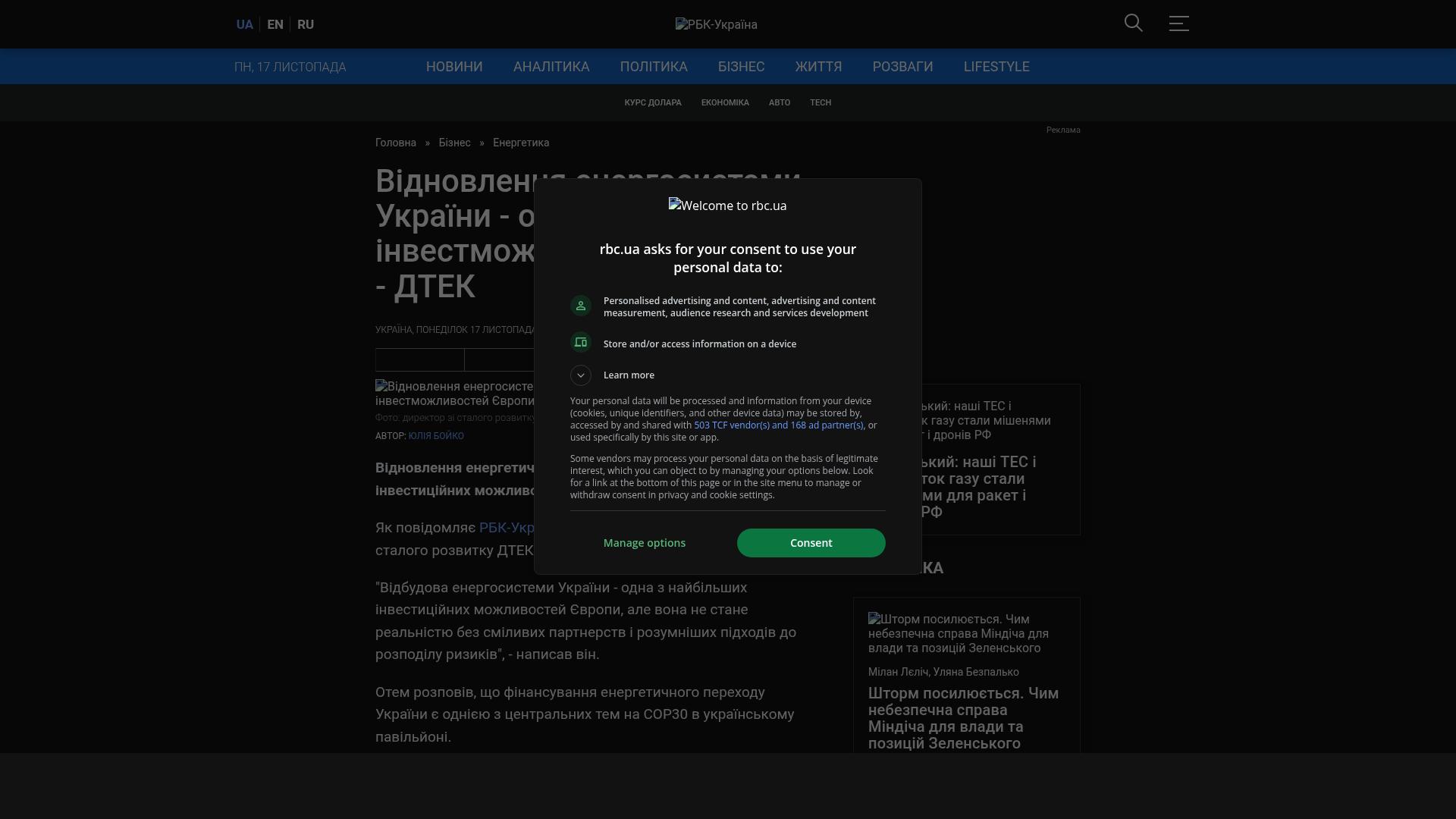 Bildschirmfoto des Originalartikels auf rbc.ua