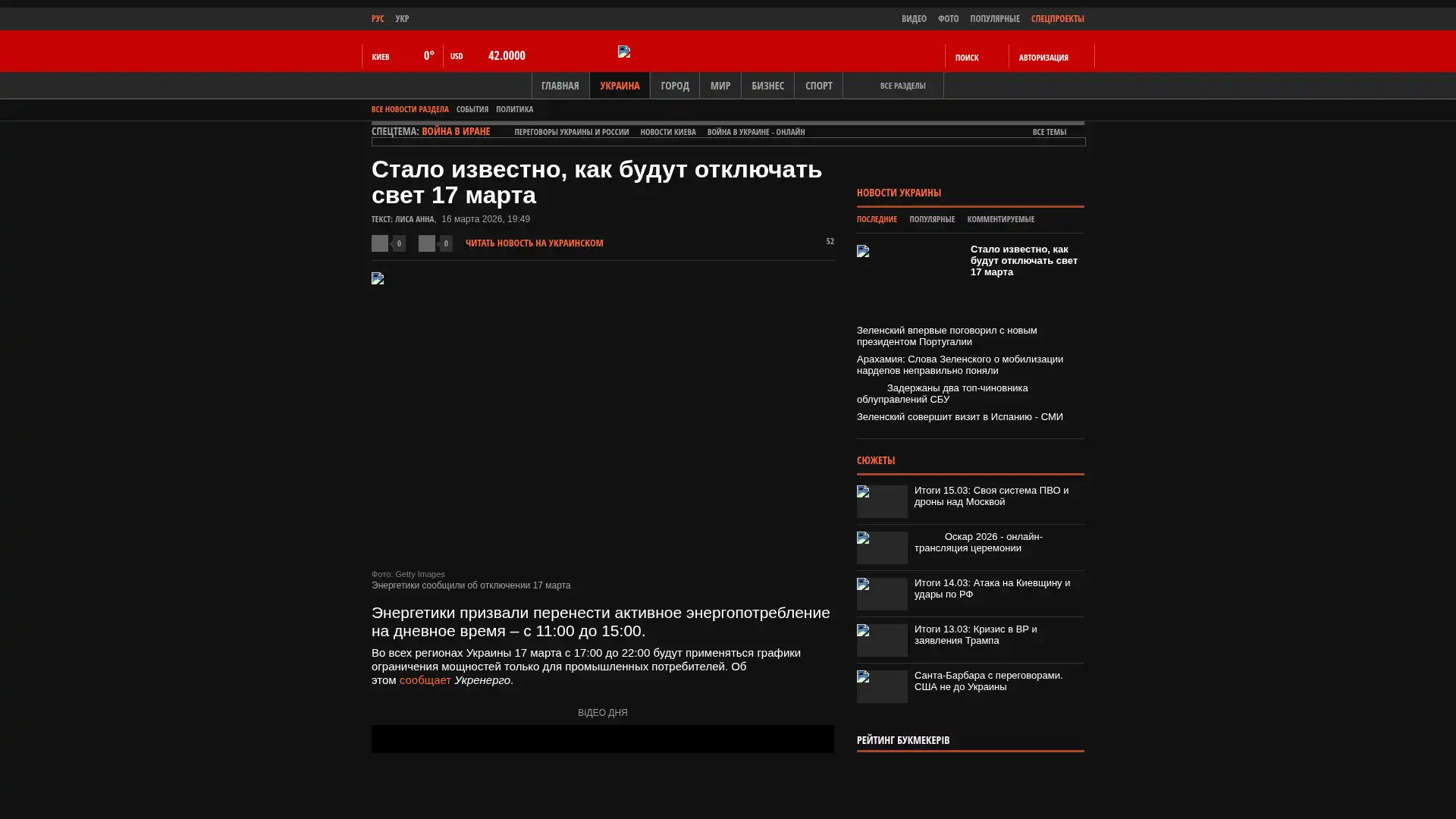 In allen Regionen der Ukraine gelten am 17. März von 17:00 bis 22:00 Uhr Leistungsbegrenzungspläne, die ausschließlich für industrielle Verbraucher gelten. Dies teilt Ukrenerho mit.