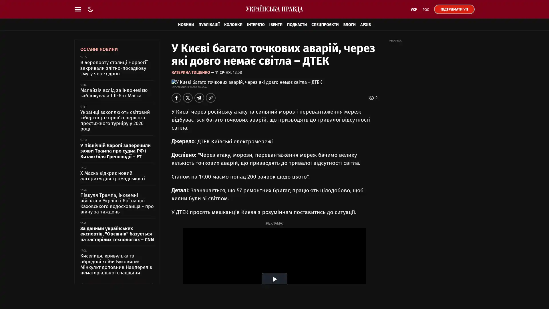 Zahlreiche Unfälle in Kiew haben zu einem langen Stromausfall geführt. 57 Mannschaften sind rund um die Uhr im Einsatz. Die Menschen werden gebeten, die Geräte nacheinander einzuschalten.