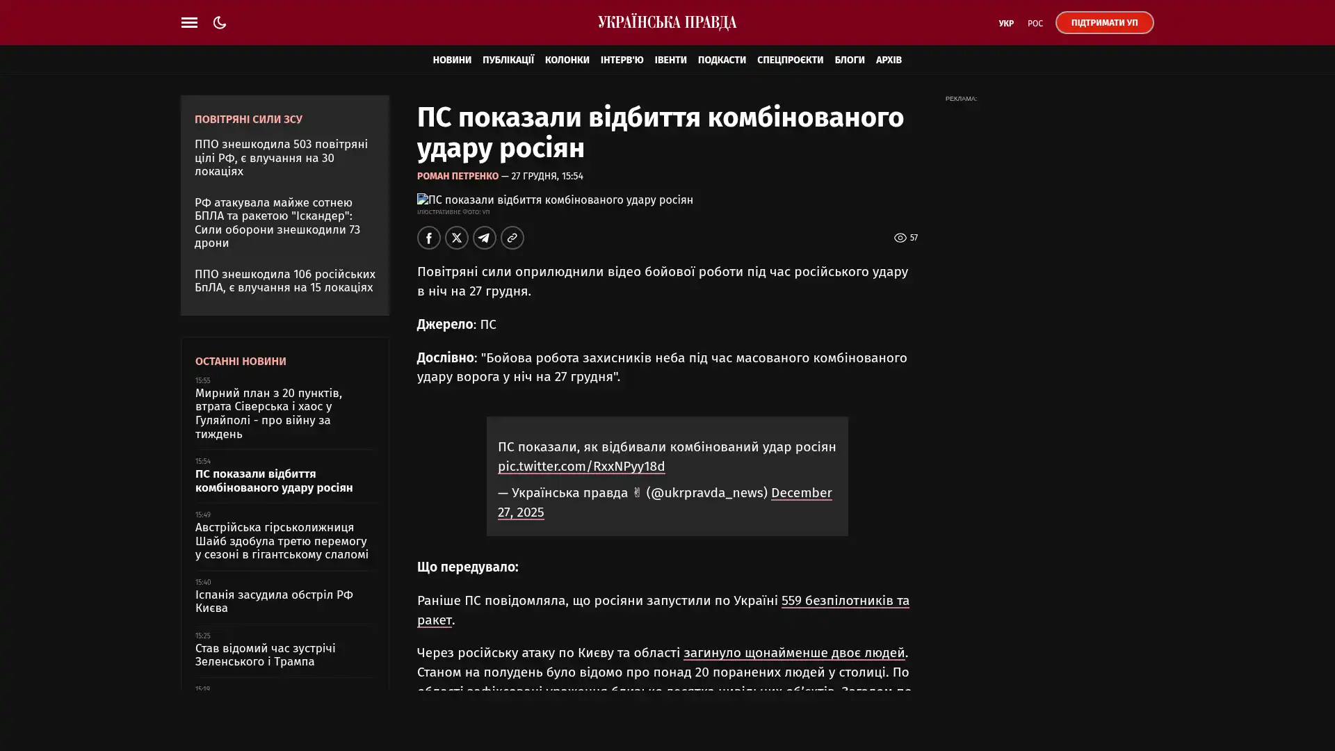 Die ukrainische Luftwaffe hat ein Video von Kampfhandlungen während des russischen Angriffs in der Nacht des 27. Dezember veröffentlicht.