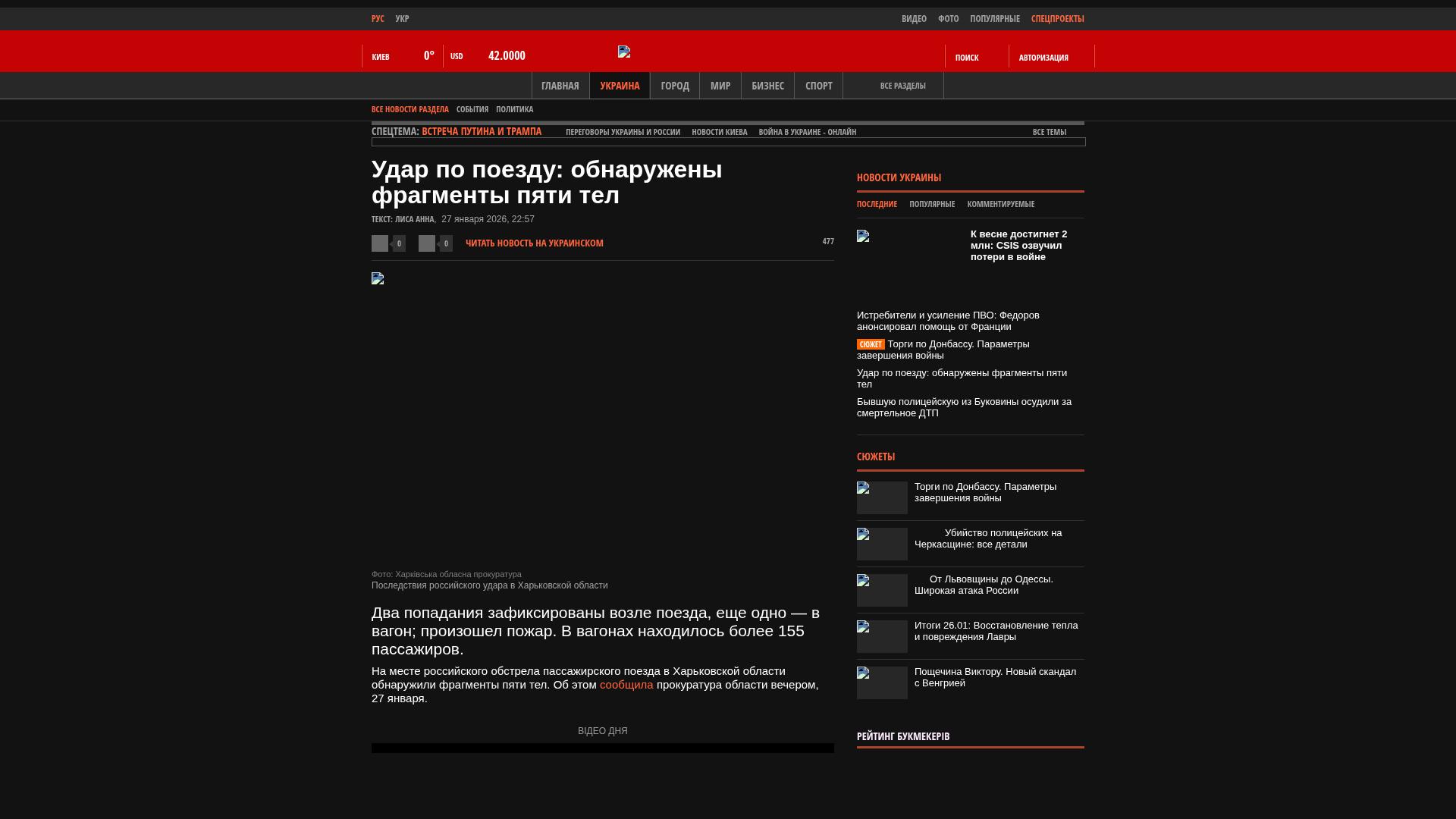 Am Ort des russischen Beschusses des Personenzugs in der Region Charkiw wurden Fragmente von fünf Leichen gefunden. Darüber berichtete die Staatsanwaltschaft der Region am Abend des 27. Januar.
